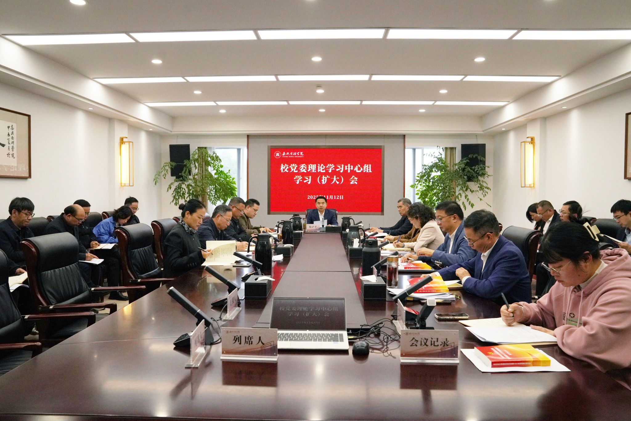 11月12日上午,校党委理论学习中心组在行政楼416会议室举行学习会,专题学习党的二十届四中全会精神。校党委书记倪沪平主持会议并讲话,校党委理论学习中心组成员参加会议,各二级学院和相关部门负责人列席会议。