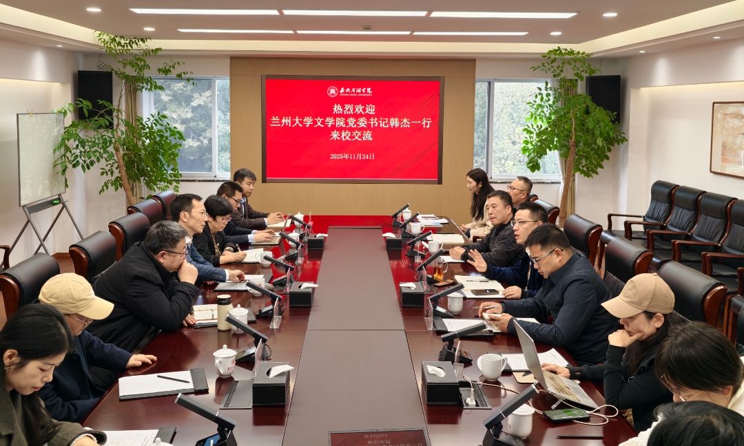 11月24日下午,兰州大学文学院党委书记韩杰一行来访,校长贾文胜、副校长赵渊接待韩杰一行。双方就专业合作、课程开发、教材运用、师资互通、影视文学创作、学生实习就业、研究生培养等方面进行了交流。