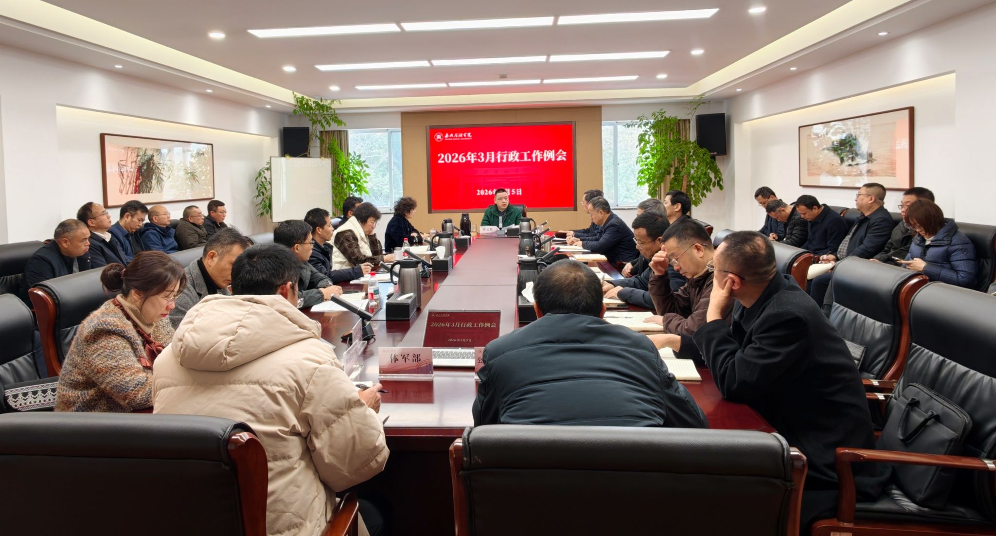 3月5日上午,学校召开2026年3月份行政工作例会,校长贾文胜就迎评促建工作作重点部署,副校长蒋文波、朱蓉、李泉明、赵渊参会。学校各部门及二级学院行政负责人参加。