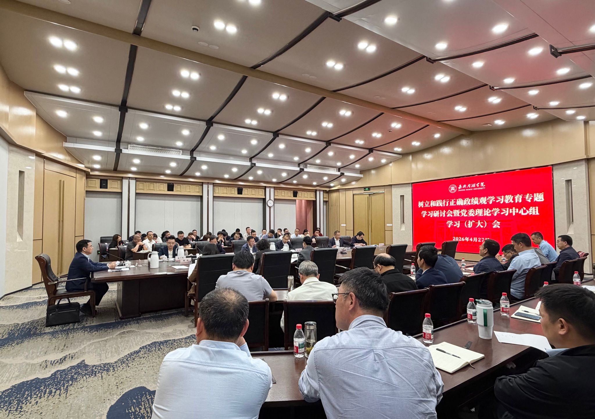 4月27日下午,嘉兴南湖学院举办树立和践行正确政绩观学习教育专题读书班暨党委理论学习中心组(扩大)会。校党委书记倪沪平主持会议并讲话,校党委副书记、校长贾文胜作专题辅导报告。校党委理论学习中心组成员、全体中层干部参加会议。