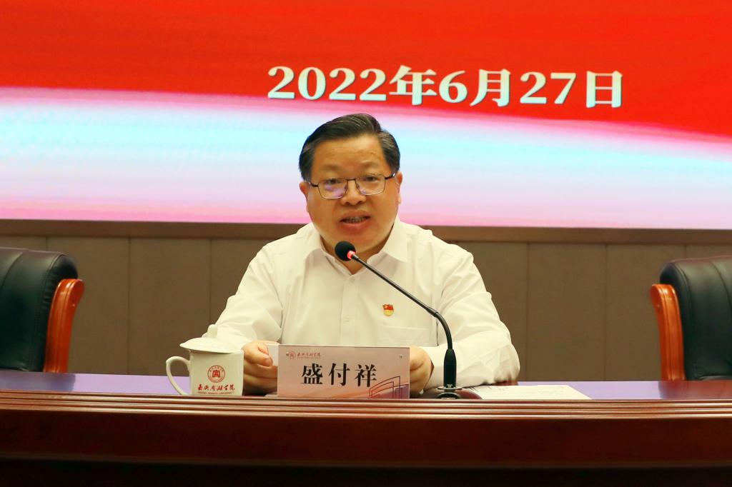 嘉兴市政协副主席、校党委书记盛付祥致辞。他对出席开馆仪式的各位领导和来宾表示热烈欢迎,对中非民间商会、红旗出版社、杭州有耳文化创意有限公司及浙江京洋环保科技有限公司一直以来关心支持学校发展表示衷心感谢。盛付祥介绍道,学校是以中国革命红船起航地——“嘉兴南湖”命名的高校,要坚决扛起守好红色根脉的政治担当,落实好立德树人根本任务。他表示,建设红船精神育人馆是以习近平总书记关于红船精神的重要论述为根本遵循,深入挖掘嘉兴底蕴深厚的历史文化和红色文化资源,并具象化为育人的重要载体。育人馆于去年 11 月开始筹划,期间,反复征求专家意见,不断完善充实内容,力求全面体现育人使命、充分展现嘉兴特色、准确把握时代内涵。