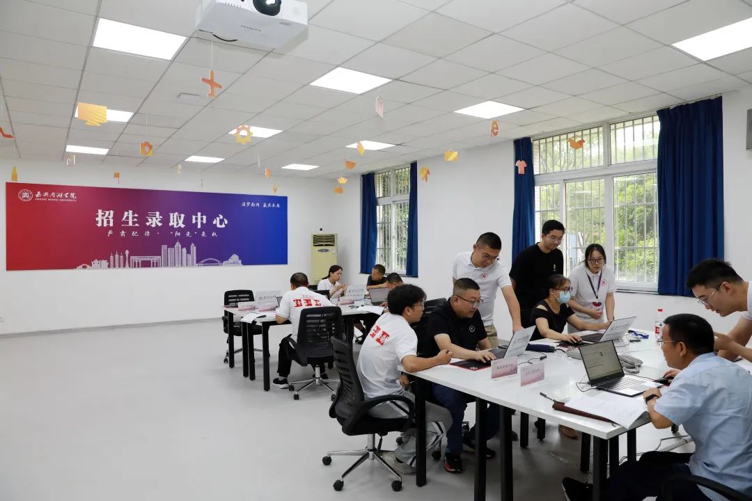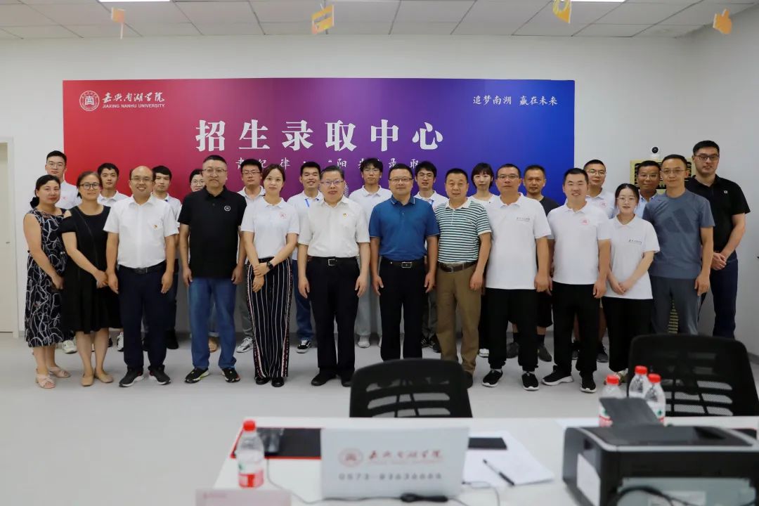 7月19日,正值浙江省高考普通类一段投档录取之际,嘉兴市政协副主席、校党委书记盛付祥,校党委副书记胡文蔚来到招生录取现场,看望慰问负责招生工作的一线师生。