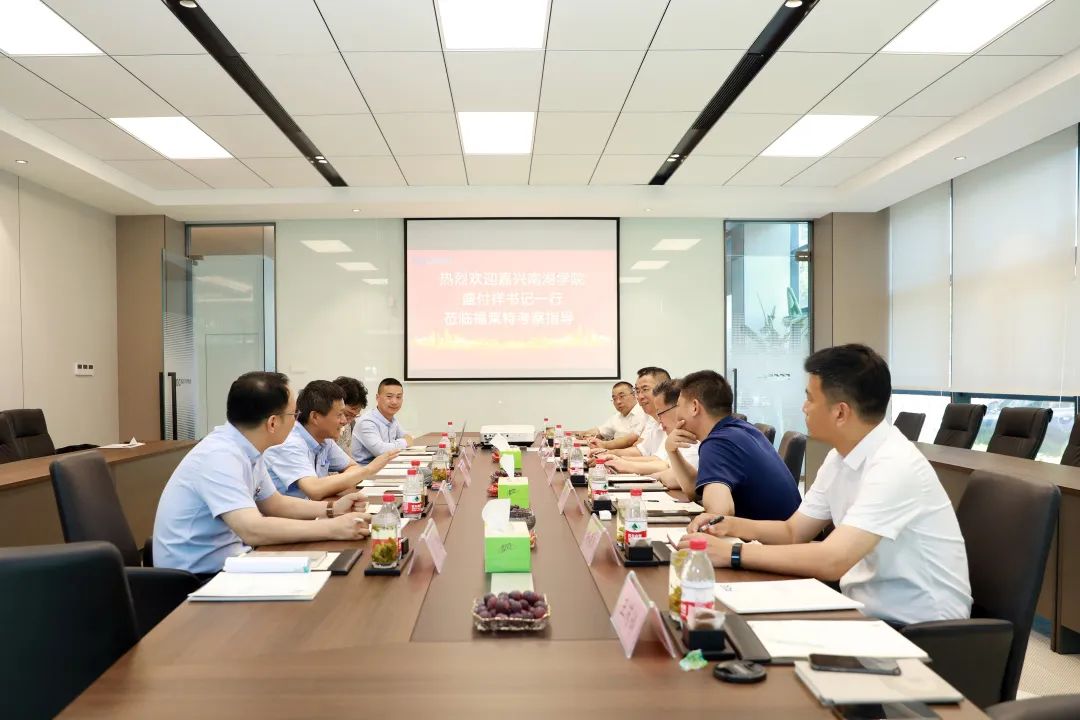 福莱特集团董事长兼总裁阮洪良代表企业对盛付祥一行的到来表示热烈欢迎,对学校长期以来与企业的紧密合作表示感谢,他希望,未来校企双方能在前期的良好合作基础上,继续深化合作机制,借助学校在人才和科研方面的优势,在人才培养、技术革新、科研转化、团队建设等方面加大合作力度,创建常态长效的校企沟通机制。