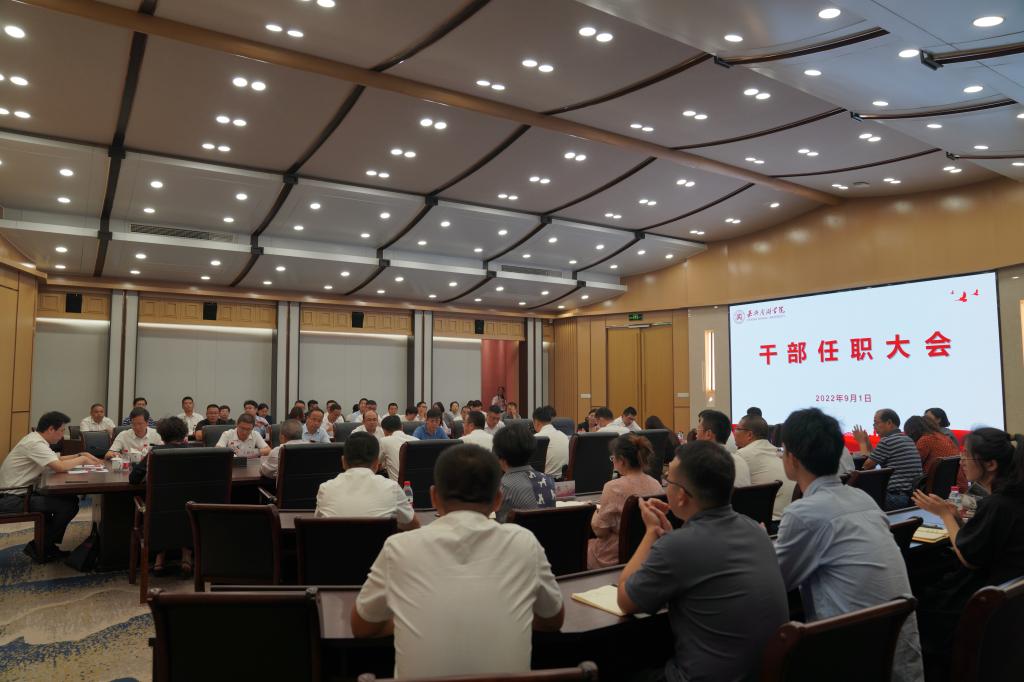 9月1日下午,学校在第六会议室召开干部任职大会,校党委副书记郭坚刚、纪委书记蒋文波、副校长朱蓉出席会议。全体中层干部及相关部门人员参加会议,会议由朱蓉主持。