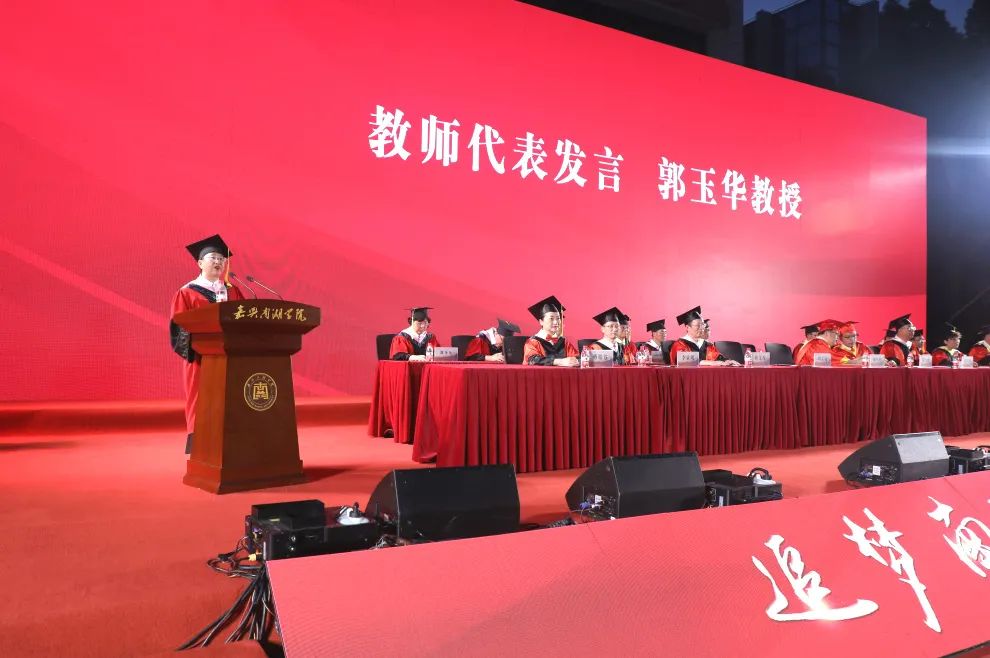 “学校独特的IP,代表了你们的基因中注入了红色。你们带着‘三个大学’的标签踏入社会,注定了你们的不平凡”,现代金融学院副院长郭玉华作为教师代表发言。她用三个“常”与毕业生们共勉,一是常思。做事前常思考,做事后常反思。二是常新。常更新思维,常用新思维、新观点看待新问题。三是常忆。希望大家无论在顺境还是逆境中都能常回忆母校。