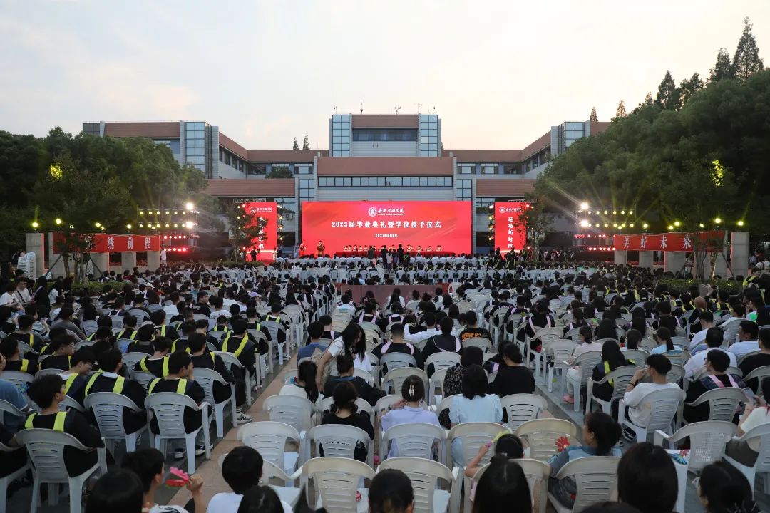 6月9日晚,嘉兴南湖学院2023届毕业典礼暨学位授予仪式在校史广场举行。校领导盛付祥、贾文胜、袁志明、蒋文波、朱蓉、李泉明、陈加明、蒋娟芬、庄应强出席典礼。全体中层干部、毕业生家长代表、毕业班辅导员和班主任及2023届毕业生代表参加典礼。典礼由校党委副书记胡文蔚主持。