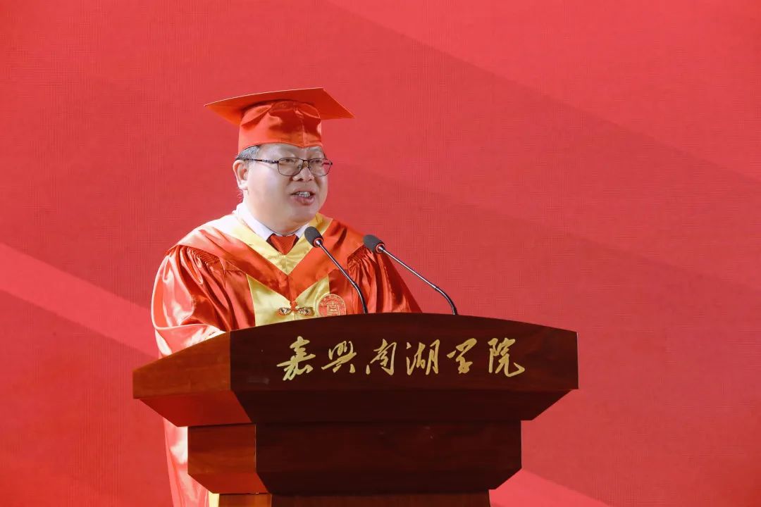 同学们,你们已经学有所成,即将满怀豪情去实现自己的凌云壮志,我代表学校衷心祝愿大家一路生花、鹏程万里。今天,我们不说再见,而是后会有期,因为你们即将作为校友,续写与嘉兴南湖学院的缘分故事。放心去飞,南湖人!勇敢去闯,南湖人!若干年后的你,无论是功成名就还是朴素平凡,学校都是你们永远的温暖港湾,都随时欢迎远行的游子回家看看!