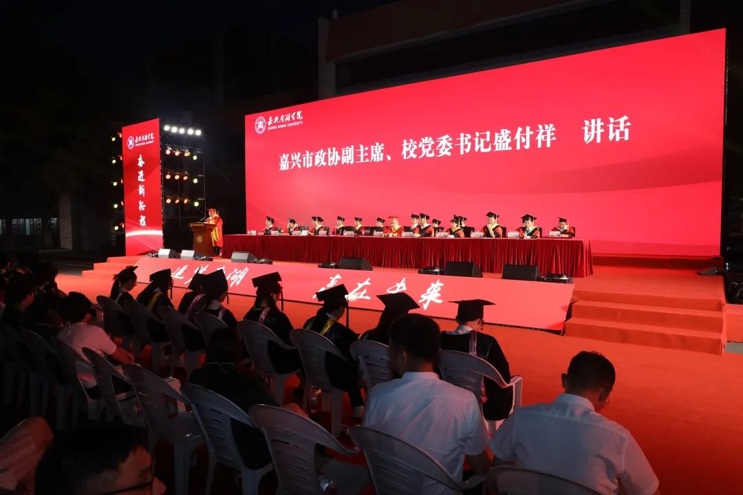 秀水泱泱,红船依旧。同学们在以革命红船起航地命名的大学里完成了大学本科学业,四年里,你们树立了越发清晰的理想目标,开启了专业知识的宝库大门,收获了最最纯真的人间情谊,积蓄了迈向远方的能力勇气。古道长亭,终有一别,在即将送同学们走出校门的时刻,我想既作为学校党委书记、也作为师长,再赠送大家三句话:
