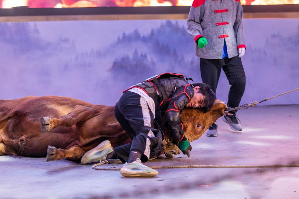 “掼牛”始于宋元时期,嘉兴的“掼牛”运动融入了船拳、心意六合拳等中华优秀传统武术,观赏性不断提升,逐渐成为具有嘉兴本土特色的体育活动,并被列入第三批国家级非物质文化遗产名录。自2012年起,“掼牛”项目被纳入嘉兴端午民俗文化节系列活动中,成为每年端午必不可少的一次盛会。