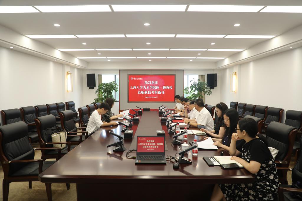 当天会议上,袁志明副校长介绍了学校的基本情况,中国金石书画研究院执行院长田振宇汇报了学校书法学专业申报进展情况。陈一梅教授认真听取介绍,并结合自身经验和专业特长,就高校传统文化教育以及书法专业建设予以了热心指导。随后,陈一梅教授还参观考察了学校红船精神育人馆、书法专用教室、中国金石书画研究院。