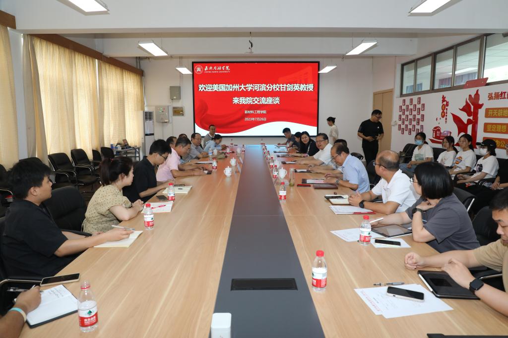 7月26日,嘉兴市政协副主席、校党委书记盛付祥会见美国加州大学河滨分校终身教授甘剑英,并参加学术交流座谈会。
