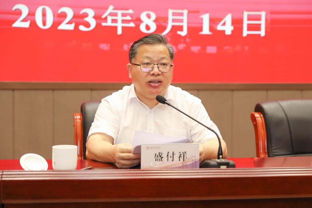 盛付祥在讲话中指出,浙江省委十五届三次全体(扩大)会议、嘉兴市委九届三次全体(扩大)会议是在“八八战略”实施20周年之际、全党深入开展学习贯彻习近平新时代中国特色社会主义思想主题教育期间、中国式现代化新征程开局之年召开的一次重要会议。他强调,嘉兴南湖学院作为唯一以中国革命红船起航地“嘉兴南湖”命名的高校,要进一步提高政治站位,把思想和行动统一到省委、市委全会精神上来,以学校的高质量发展、以人才的高水平培育,走好“八八战略”新的赶考之路。他要求学校全体党员干部师生,一要立即全员行动,迅速掀起学习宣传贯彻省委市委全会精神的热潮;二要切实抓好转化,将省委市委全会精神贯彻落实到学校自身建设中去;三要发挥自身优势,为全省全市续写“八八战略”大文章作出应有贡献。