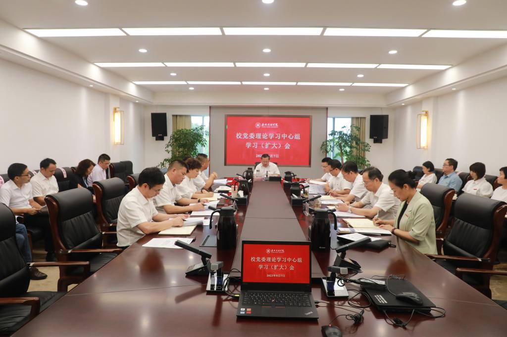 9月7日下午,校党委理论学习中心组举行主题教育第一次专题学习会,围绕学习贯彻习近平新时代中国特色社会主义思想开展深入学习研讨。嘉兴市政协副主席、校党委书记盛付祥主持会议并讲话,校党委理论学习中心组全体成员、各二级党组织负责人参加学习会。