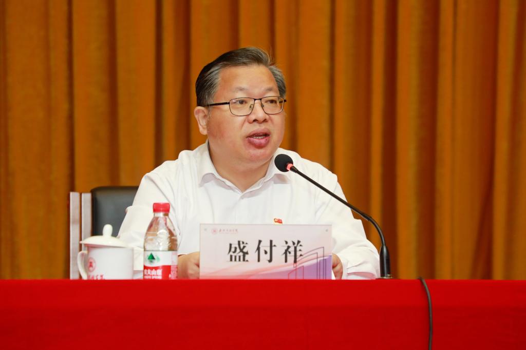 盛付祥强调,要强化革命红船起航地命名高校的思想自觉,深刻认识主题教育的重大意义。开展主题教育是坚定捍卫“两个确立”、坚决做到“两个维护”的根本要求,是办好党的诞生地人民满意教育的内在要求,是推进全面从严治党的迫切要求。要强化革命红船起航地命名高校的政治自觉,一体推进主题教育各项重点任务举措。在理论学习上体现高质量,在调查研究上体现高水平,在推动发展上体现高效能,在检视整改上体现高标准,在建章立制上体现高要求。坚持把“学思想、强党性、重实践、建新功”这一总要求贯穿这次主题教育全过程,充分利用地方与学校独特资源优势,在开展主题教育中,干在实处,走在前列。要强化革命红船起航地命名高校的行动自觉,全面推动主题教育责任落细落实。要加强组织领导,精心部署推动;要加强宣传引导,营造浓厚氛围;要加强分类指导,确保取得实效。