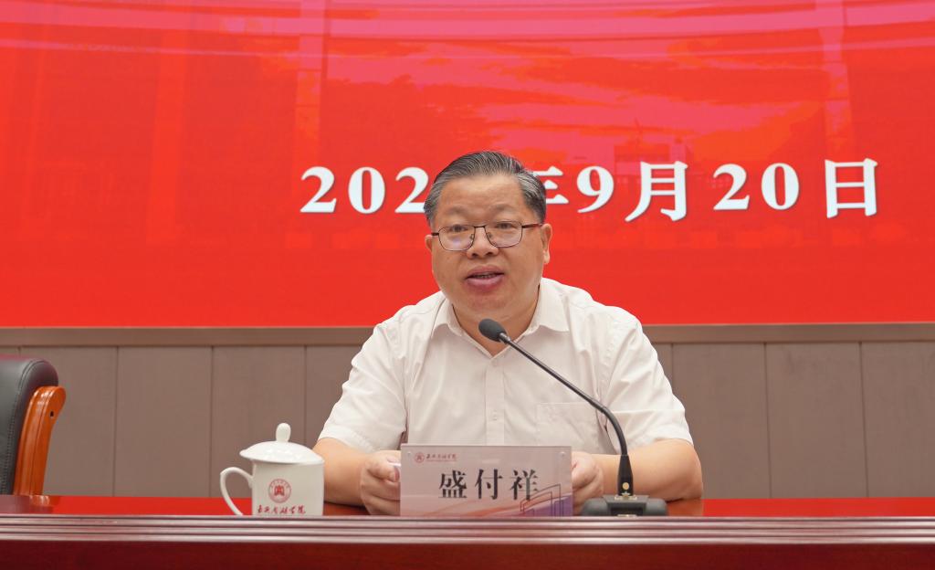 就高标准、高质量抓好本次读书班学习,盛付祥要求,一要提高政治站位,充分认识举办读书班是开展主题教育的重要要求,是加强理论武装的有效形式,也是领导干部以上率下的实际行动。以主题教育读书班为契机,深入学习贯彻习近平总书记关于开展主题教育的重要讲话精神,学深悟透习近平新时代中国特色社会主义思想。二是聚焦学思践悟,坚持不懈用习近平新时代中国特色社会主义思想凝心铸魂。在以学铸魂、以学增智、以学正风、以学促干上下功夫。全面系统读原著、学原文、悟原理,深刻学习领会习近平新时代中国特色社会主义思想的科学体系和精髓要义。通过学习,熟练掌握习近平新时代中国特色社会主义思想的思想方法、领导方法和工作方法,深刻理解蕴含其中的道理学理哲理。大力弘扬清廉之风,牢固树立正确的权力观和政绩观,筑牢思想防线,坚守法纪红线。坚持学思用贯通、知信行统一,切实以学校高质量发展来检验主题教育的实绩实效。三应弘扬良好学风,确保主题教育读书班高质高效。开展主题教育读书班是一项重要政治任务,必须发扬严实学风,需原原本本学、循迹溯源学、联系实际学。