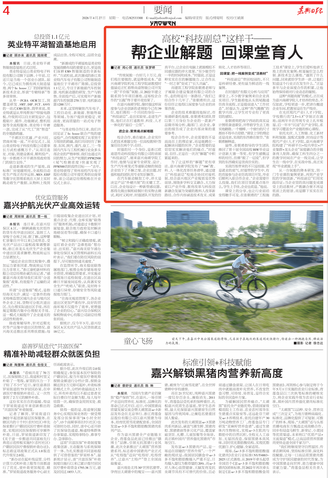 嘉兴日报:高校“科技副总”这样干——帮企业解题 回课堂育人