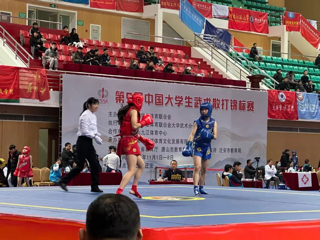 11月1日至8日,第9届中国大学生武术散打锦标赛在河北省迁安市九江体育中心举行。该锦标赛由中国学生体育联合会主办,设置男子、女子甲组至丁组4个组别54个竞赛级别,吸引了来自全国高校的168支队伍、1000 余名大学生运动员同台竞技。中国大学生武术散打锦标赛代表了国内大学生武术散打的最高竞技水平,自2015年以来已成功举办9届,新华社等权威媒体也对今年的比赛予以关注和报道。